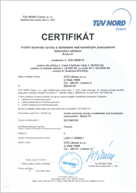 4) Certifikát schválení vnitřní kontroly výroby s dohledem nad konečným posouzením tlakového zařízení pro Modul A1 tlakových zařízení a potrubí